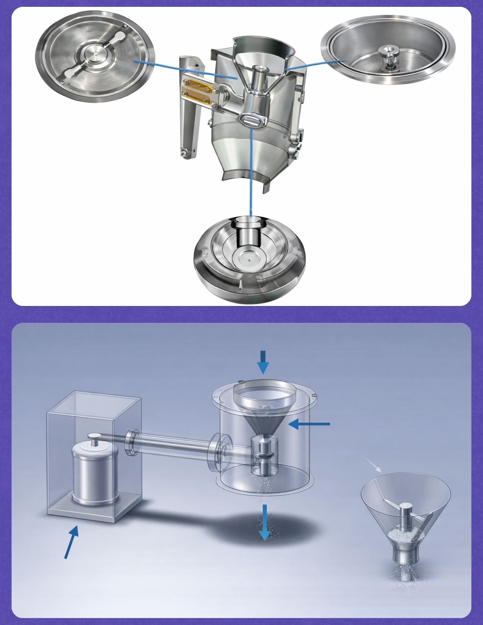 Sanitary Construction: Engineered with a sanitary process chamber and minimum contact surfaces to ensure easy cleaning and compliance.